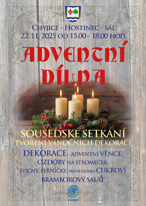 Adventní dílna se koná v sobotu 22. listopadu 2025 od 15 do 18 hodin.