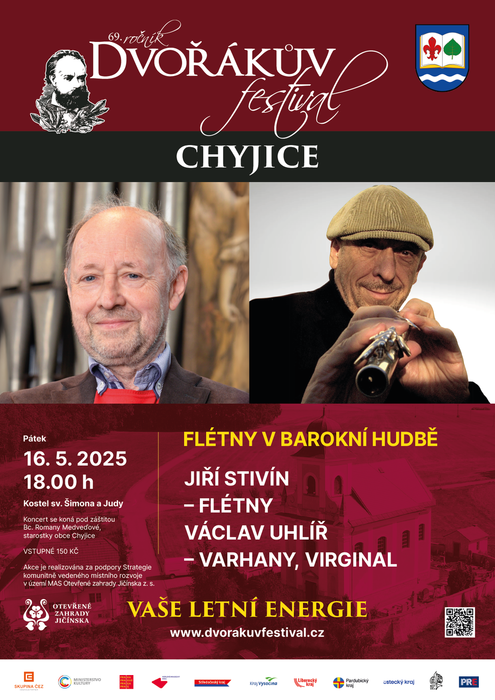 I letos jsme pro Vás připravili jedinečný koncert! Jiří Stivín a Václav Uhlíř vystoupí v rámci 69. ročníku Dvořákova festivalu v kostele sv. Šimona a Judy dne 16. května 2025 od 18 hodin. Vstupné je 150 korun. Srdečně Vás zveme. POZOR! Vstupenky je dobré si rezervovat/zakoupit u pí Havířové (606 632 940).